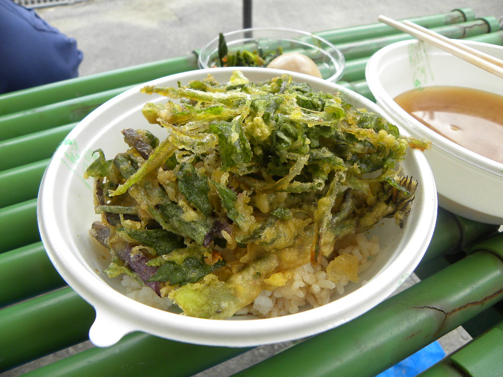 山の幸たっぷりの山菜丼は、鮭川村で採れた山菜を使っております